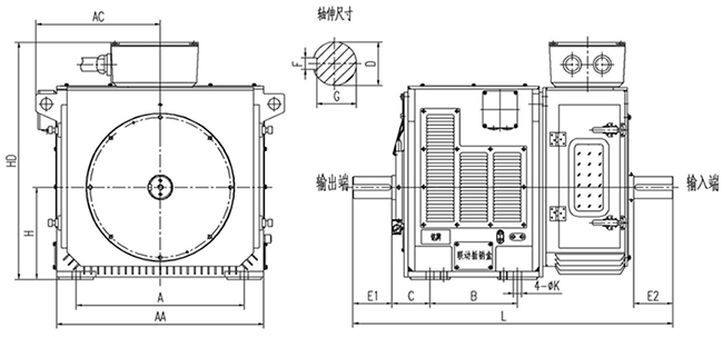 表1 YORQ短系列永磁耦合調(diào)速器外形及安裝尺寸表(機(jī)座號355~630)