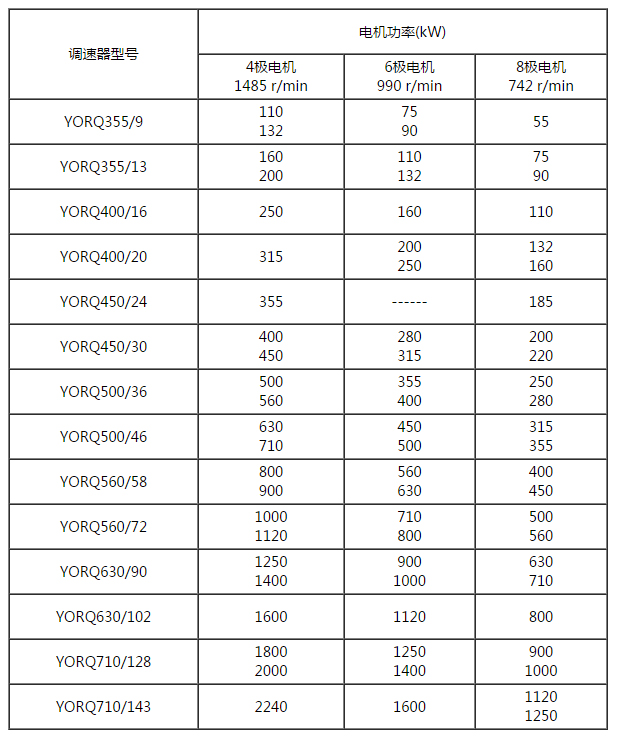 表2 YORQ短系列永磁耦合調(diào)速器與匹配電動機(jī)功率對照表
