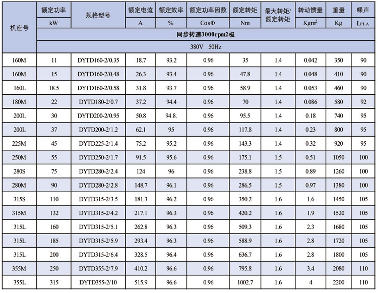 下表為與平方轉矩系統45kW-4(Y2系列異步電機使用變頻供電)同工況效率對比